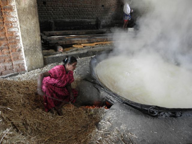 A coconut central market where the farmers brought their harvests to sell and be distributed throughout the region. Local coconuts are shipped via brilliantly decorated trucks to population centers in north that don’t grow them. Small plantation owners bring in their harvested crops and sell them at auction. Coconuts are a staple in Indian cooking for most meals whether curries or chutneys.A small village sugar making process was underway and we were welcomed into observe.
